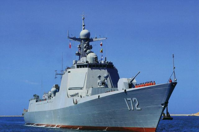 这艘舰的满载排水量差不多7000吨,和052D差不多重。说到武器系统,它装的是八组六联装的转轮式冷发射装置,总共有48个发射单元,不过它没法一坑多弹,只能装红旗9远程防空导弹。反舰导弹是箱式发射的,通用性不是很好。现在,中国海军的盾级战舰总共有53艘了。另外,中国海军还有2艘052型、2艘052B型、1艘051B型、2艘051C型,外加从俄罗斯买的4艘“现代”级驱逐舰,驱逐舰加起来有64艘。但那些早期造的驱逐舰,性能不咋地,没有远程防空能力,也没装相控阵雷达。虽说后来进行了现代化改造,可战斗力也就和054A型护卫舰差不多,没法跟052D和055型驱逐舰比。